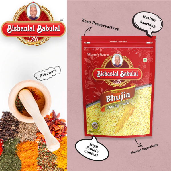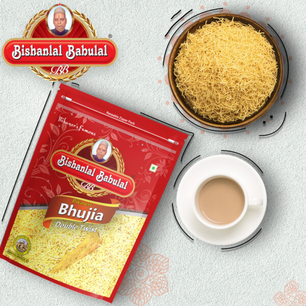 ✅ Authentic Bikaneri Bhujia – Traditional Indian snack made hygienically with premium ingredients, free from preservatives and artificial flavors.